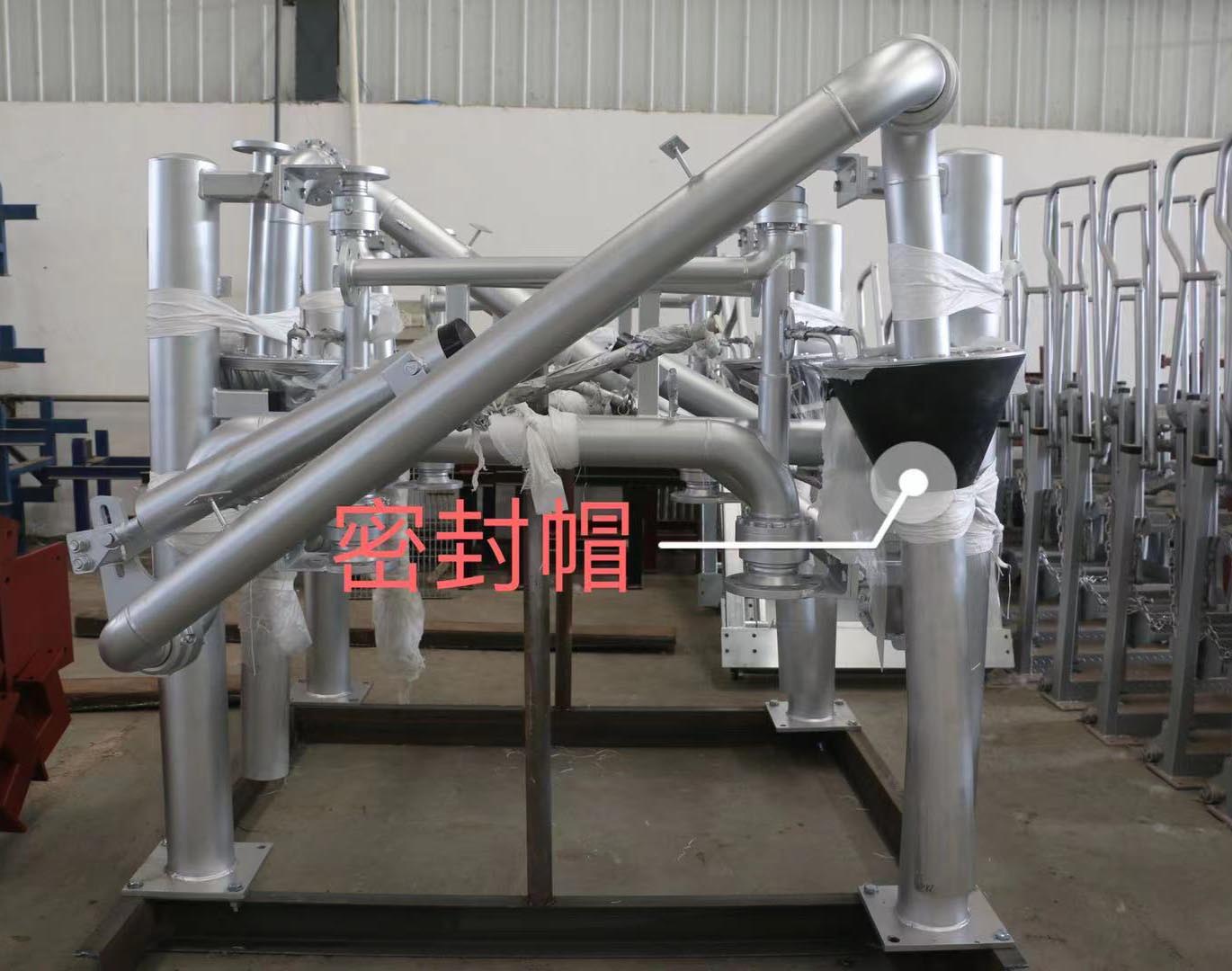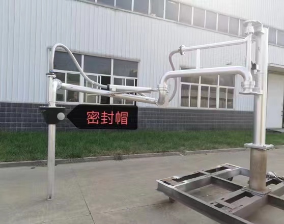 產品性能:與罐口接觸的密封面采用柔軟耐磨的專用材料和結構,比原有密封帽使用壽命提高3-4年。采用平衡性原理,將裝車時產生的油氣壓力,通過柔性平衡器的作用,實現(xiàn)車口密封面上下作用力平衡,使與車口接觸的密封蓋不僅受上舉力,還受下壓力,在這2個相反方向作用力的作用下,可以保證車口的有效密封。在此結構中,采用了助力設計和補償性設計,可以實現(xiàn)對車口變形,槽車因重量下沉的補償,使得槽車口與密閉罩的緊密結合,實現(xiàn)密閉裝車。